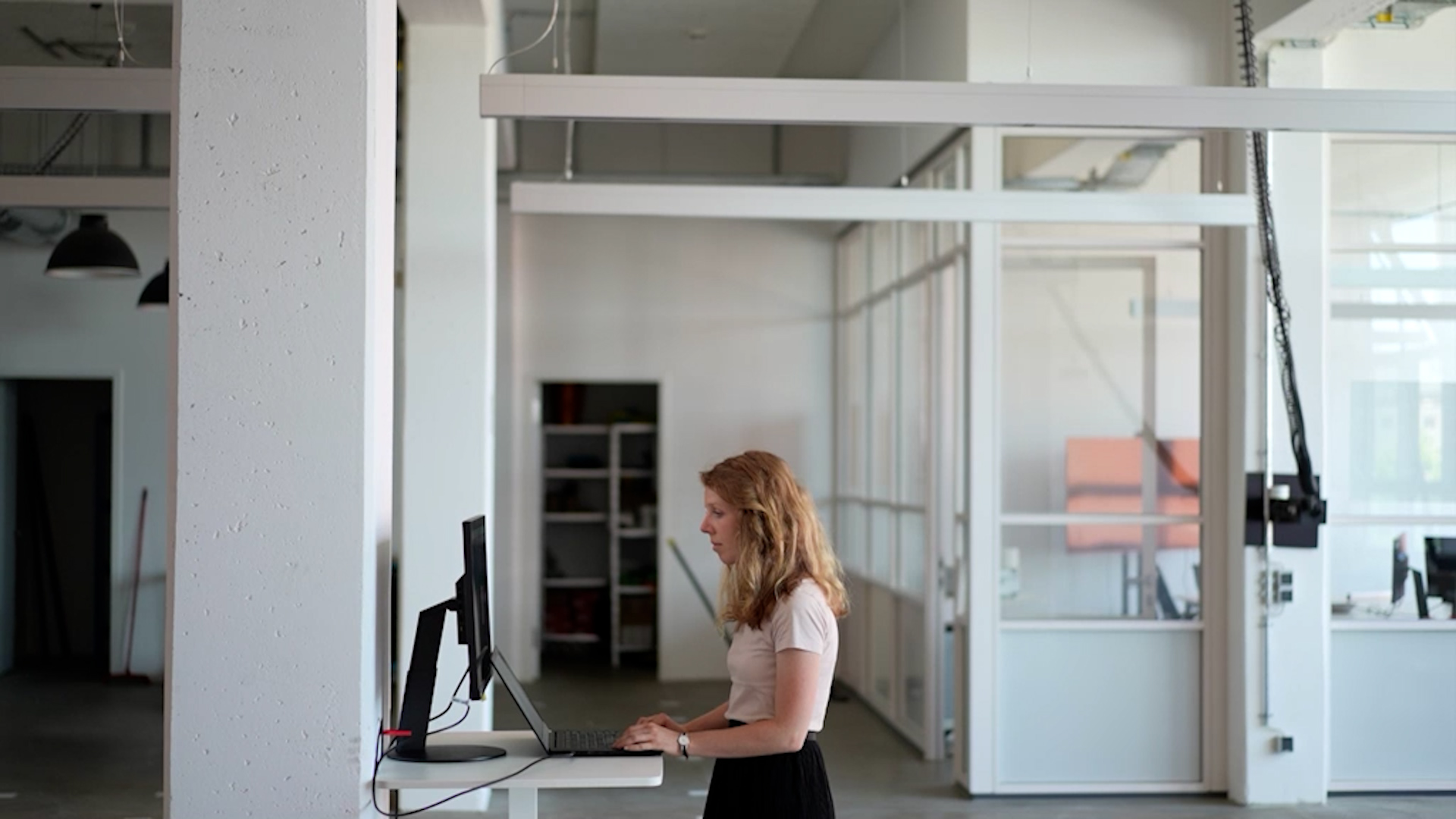 My morning starts with the daily. It is a brief meeting where the whole team gets together, and we reflect on what each of us did the day before. And then we talk about the plans for the day. After that, I continue working on my tasks. On average, it takes me three days to complete each task, which is usually implementing a new feature. That means reading code and writing code, as well as testing in a simulation. We are now very lucky that we have this test area directly in the office, so I am also constantly running some tests with the real robot driving around the space.